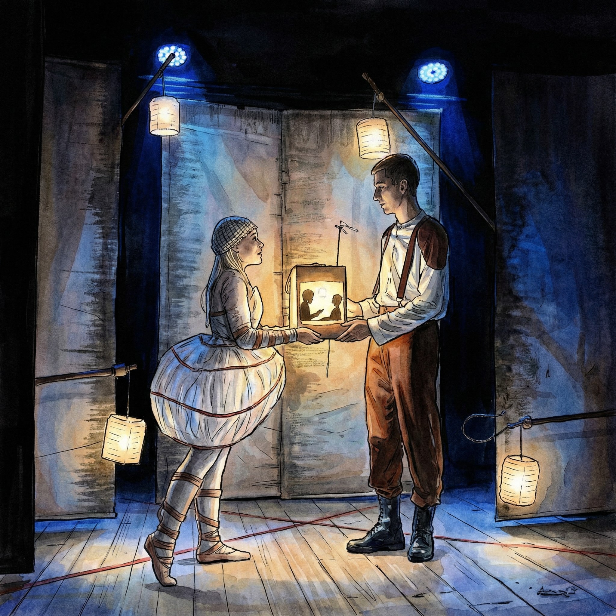 «Книга – это заряженное ружье в доме соседа. Сжечь ее! Разрядить ружье! Надо обуздать человеческий разум. Почем знать, кто завтра станет мишенью для начитанного человека. Может быть я?». 451 градус по Фаренгейту – температура, при которой воспламеняется и горит бумага. Бумага и стала основным художественным приемом сценографии спектакля, материалом и фактурой для декораций, костюмов, кукол. Материалом, передающим всю хрупкость мира, который человек сам и создал.